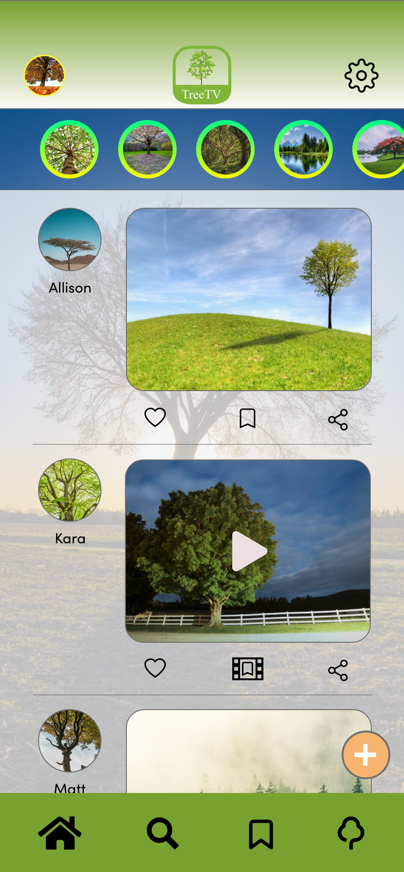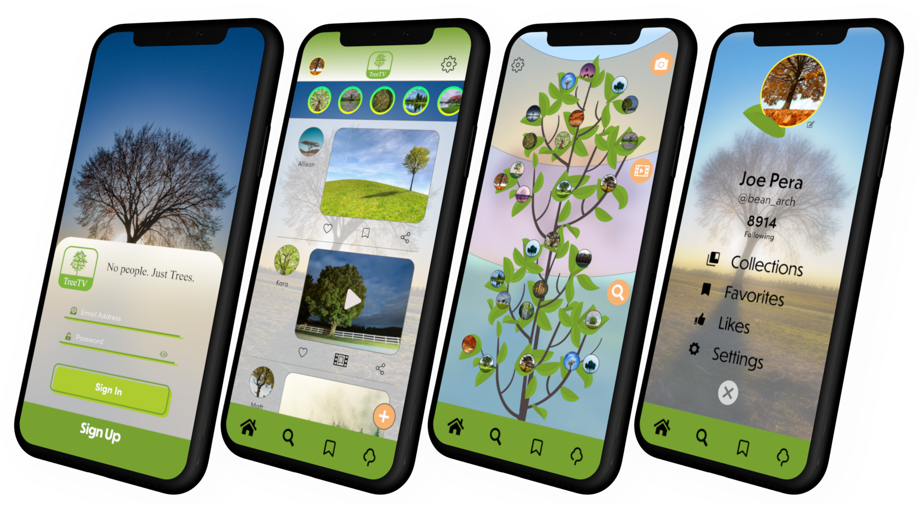 The TreeTV app is a unique take on social media. Instead of person to person interaction, the user’s connection is through trees and only trees. The user's Favorites page grows like a tree as they add videos and photos. Get to know a tree, based on your personality.